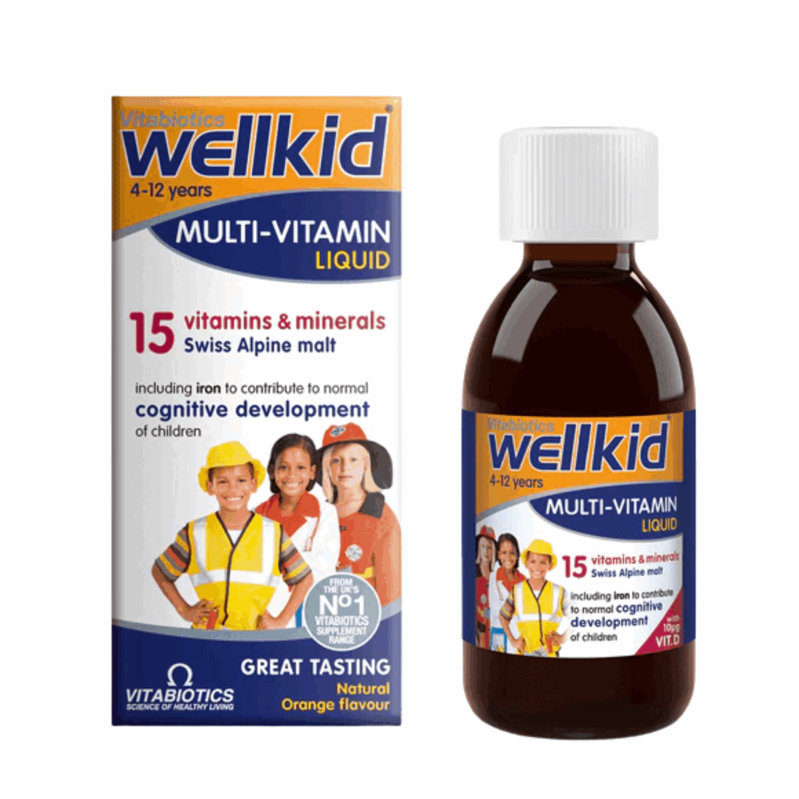 Wellkid® Multi-Vitamin Liquid është një suplement ushqimor i avancuar, i krijuar posaçërisht për të mbështetur zhvillimin e shëndetshëm të fëmijëve nga 4 deri në 12 vjeç.