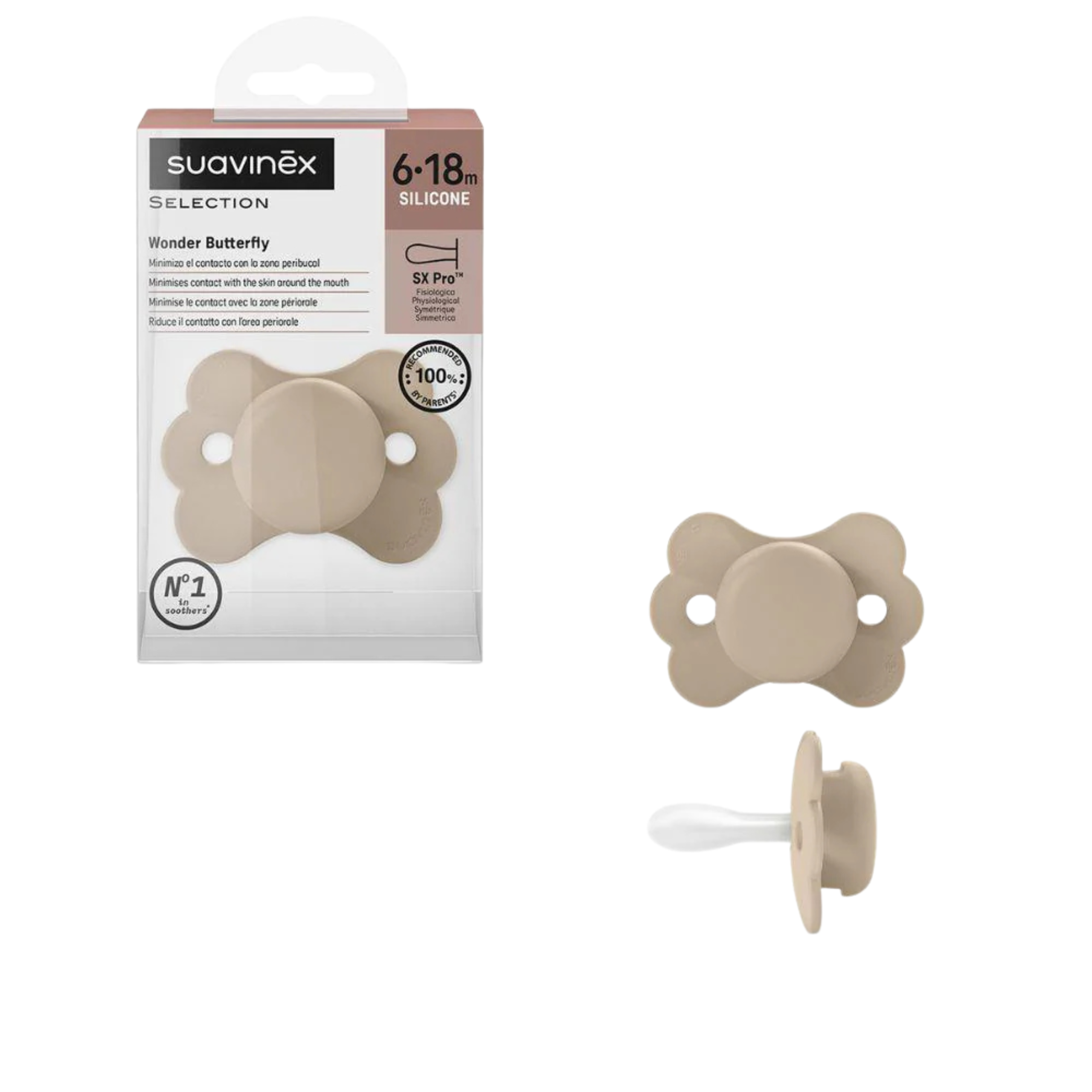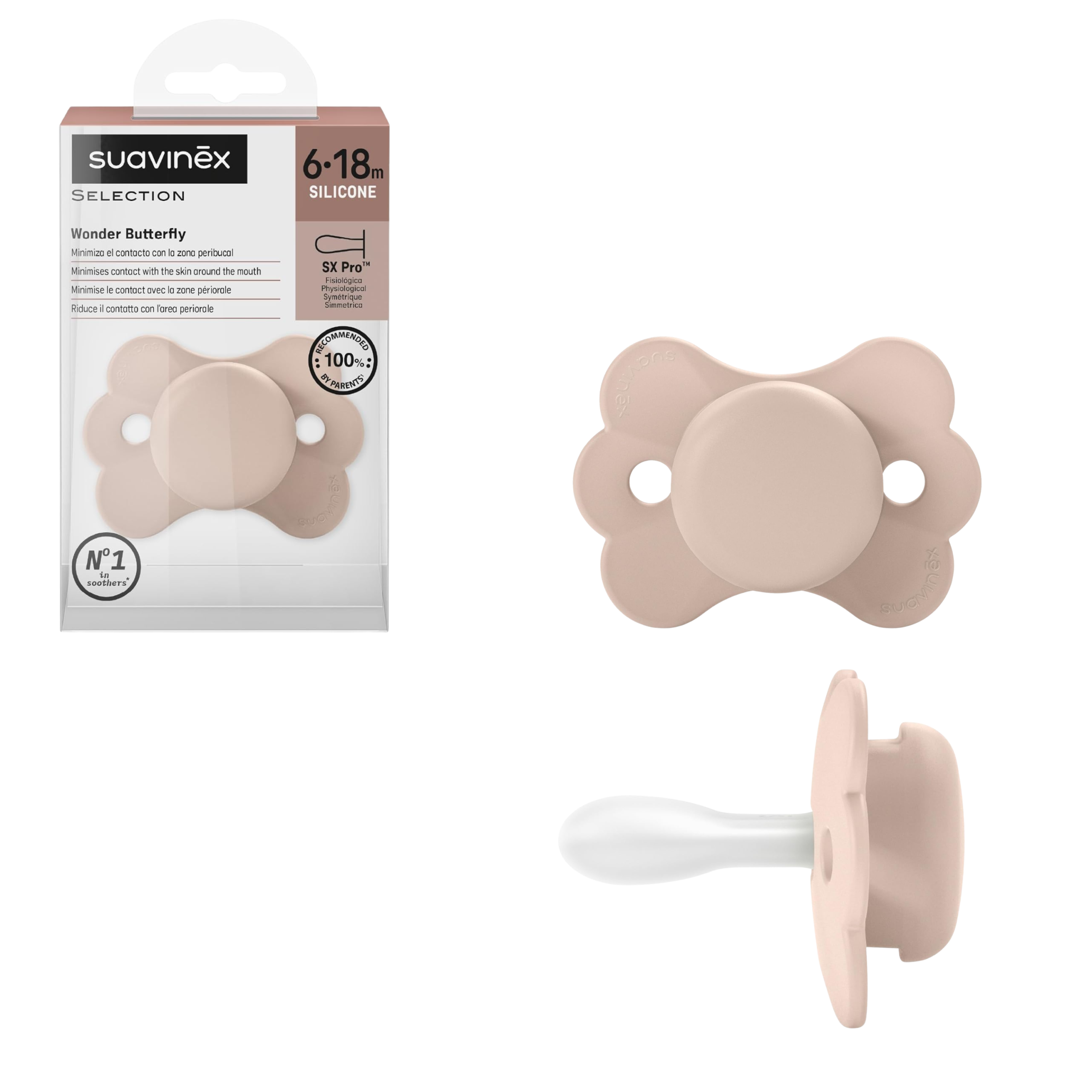 Suavinex Selection Wonder Butterfly 6–18m është një biberon (chupete) i projektuar për foshnja nga 6 deri në 18 muaj, i cili mbështet zhvillimin natyral të gojës dhe ofron rehati maksimale gjatë përdorimit.