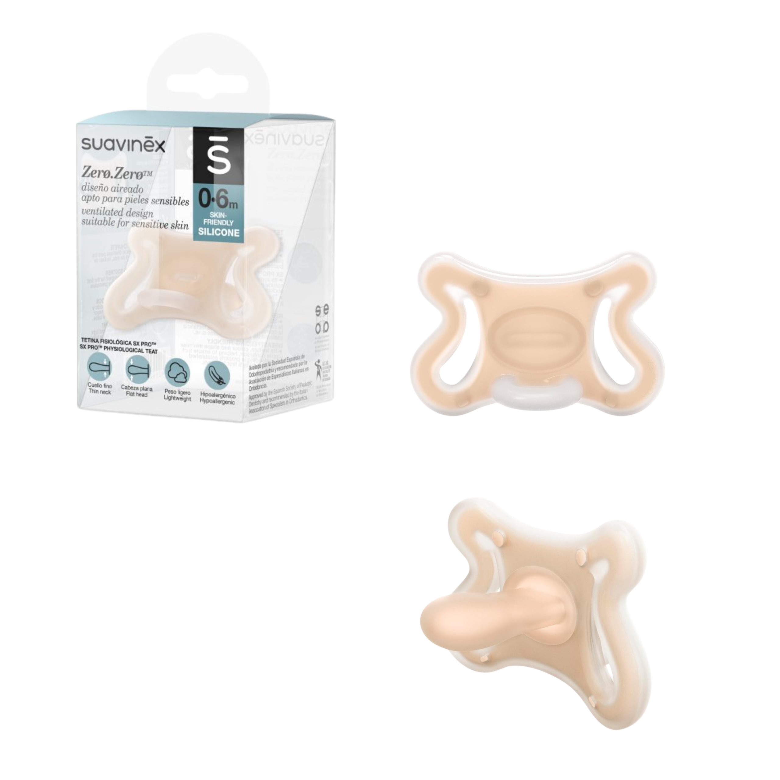 Suavinex Zerø.Zerø Ultra Silicone Pacifier 0–6m është një biberon premium i projektuar posaçërisht për të porsalindurit dhe foshnjat deri në 6 muaj, veçanërisht për ata me lëkurë shumë të ndjeshme ose që ushqehen me gji.