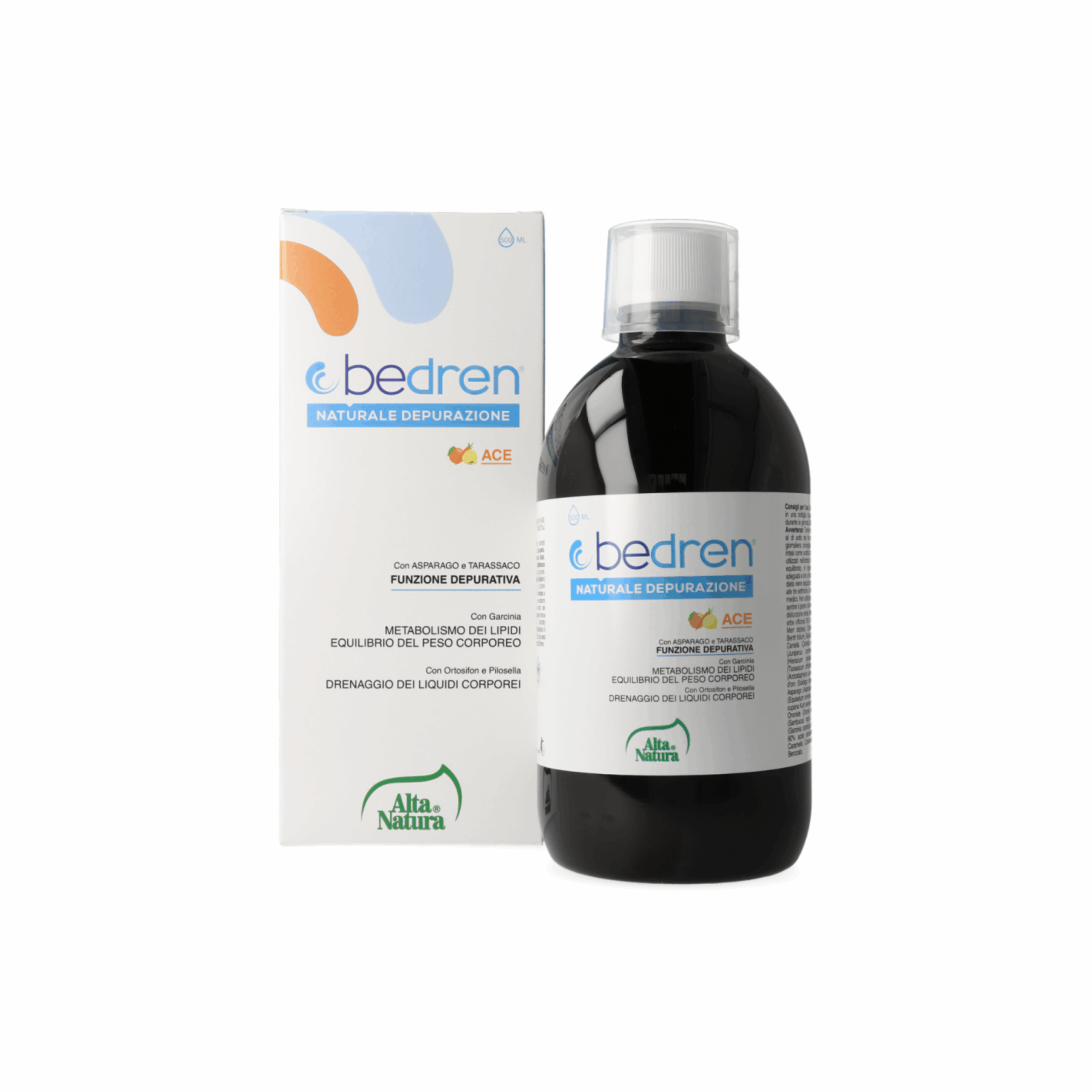 Bedren ACE nga Alta Natura është një shtesë ushqimore me bazë bimore, e formuluar për të mbështetur drenimin e lëngjeve të tepërta, pastrimin e trupit nga toksinat dhe përmirësimin e mikroqarkullimit. Një aleat ideal për ata që kërkojnë të luftojnë mbajtjen e ujit, ndjesinë e rëndesës dhe papërsosmëritë e lëkurës si celuliti.