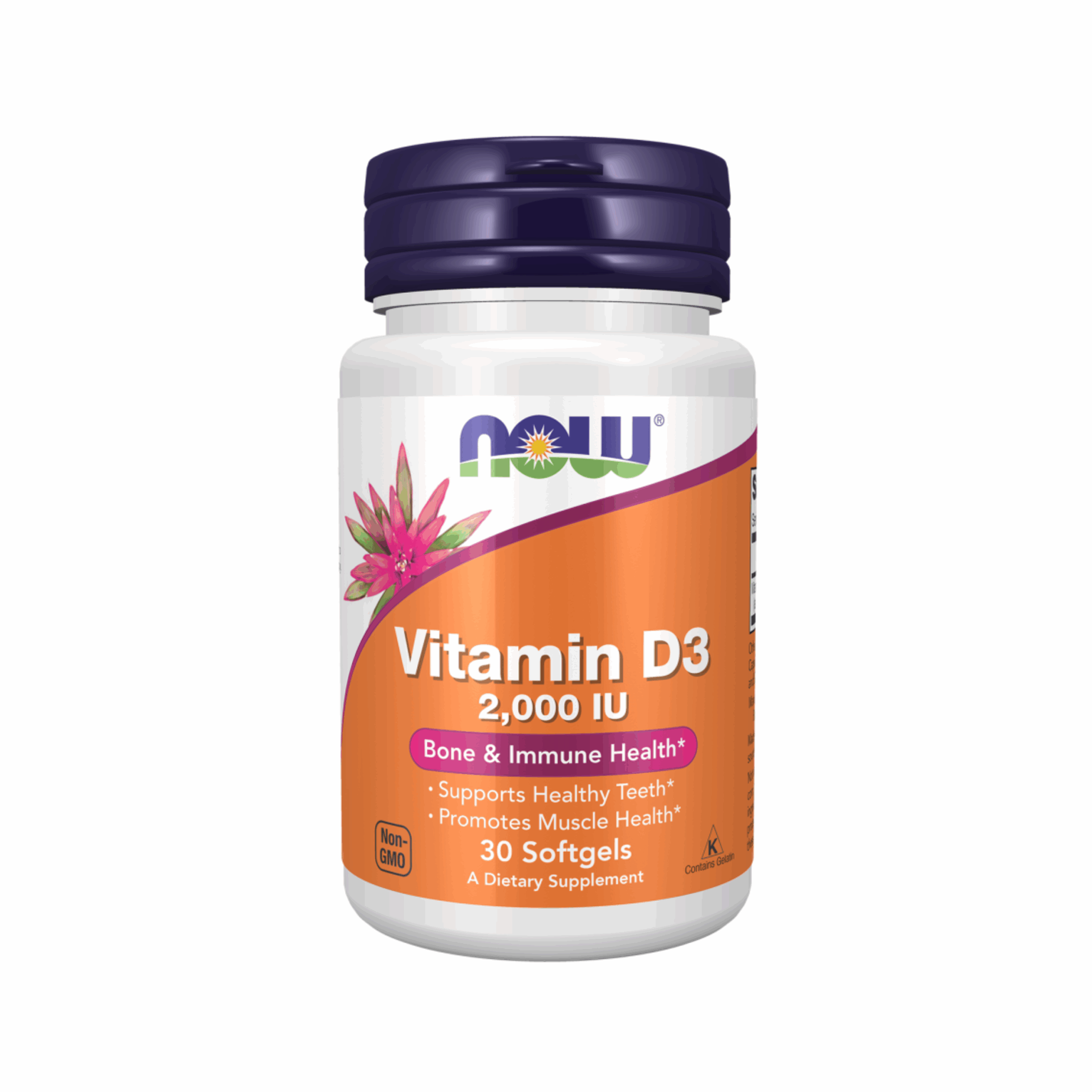 NOW® Vitamin D3 2000 IU ofron një dozë optimale të vitaminës D3 (kolekalciferol) – forma biologjikisht aktive e vitaminës D që trupi e përthith dhe përdor më lehtë. Vitamina D3 është thelbësore për shëndetin e kockave, funksionimin normal të sistemit imunitar, dhe balancën e kalciumit dhe fosforit në trup.